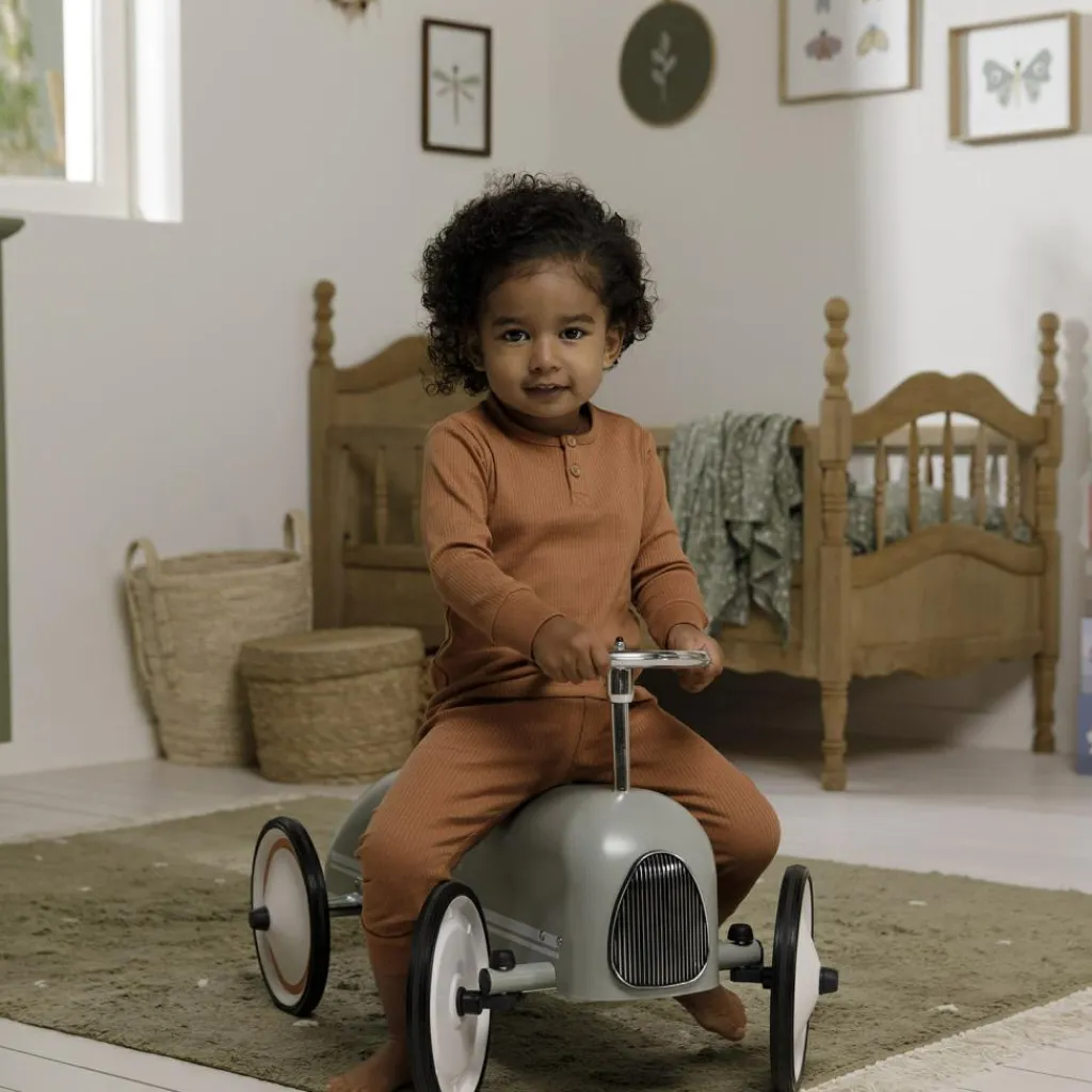 Faites vivre à votre enfant des aventures pleines de charme avec le Porteur voiture rétro Roller Olive de Little Dutch !