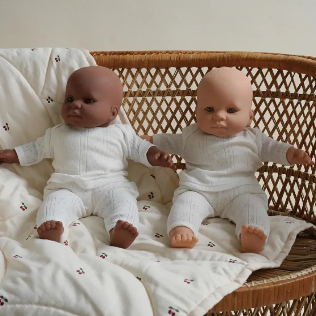 – Poupée fabriquée en vinyle avec un tissu en coton bio et un rembourrage en polyester recyclé.
