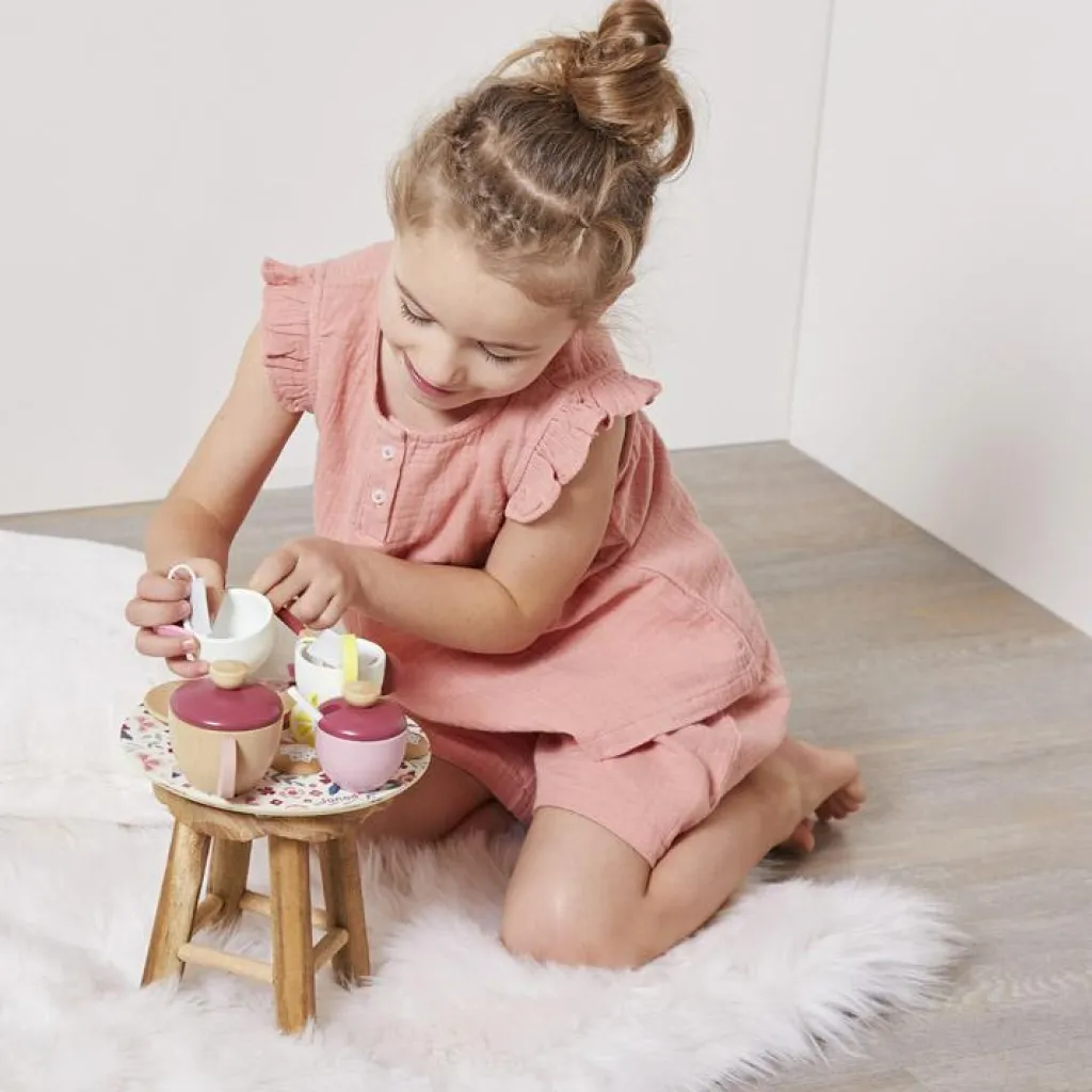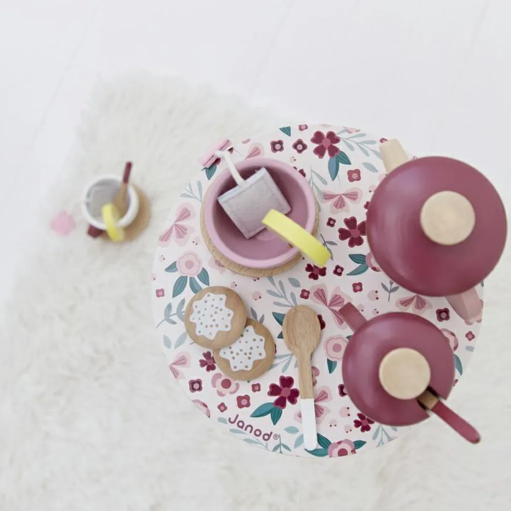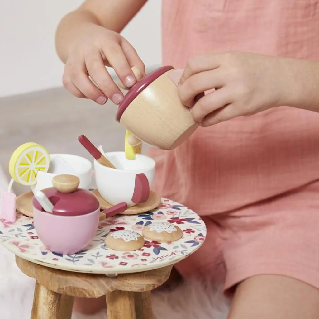 – Comprend 1 plateau, 1 théière, 1 pot à sucre, 2 tasses, 2 sous-tasses, 3 cuillères, 2 sachets de thé, 2 biscuits, 2 rondelles de citron.
