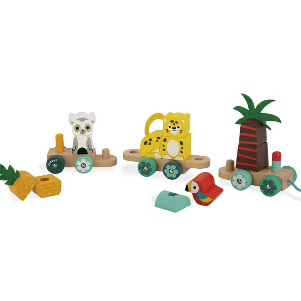 – 11 pièces pour reconstituer un perroquet, un palmier, un jaguar, un lémurien et un ananas.