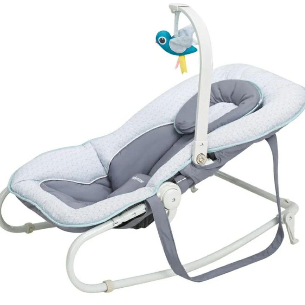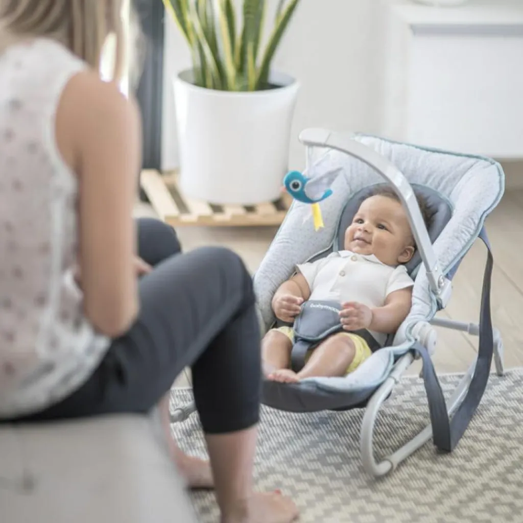 – Ne pas placer, suspendre des ficelles autour du cour de l’enfant et au transat.