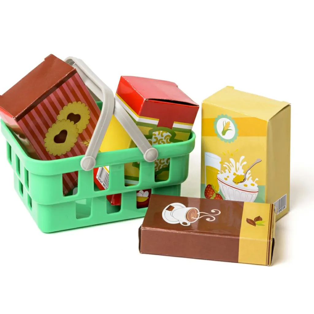– Contient : 1 tapis roulant, 1 lecteur de carte de paiement, 1 carte de paiement, 12 billets, 12 pièces, 1 panier, 4 boîtes.