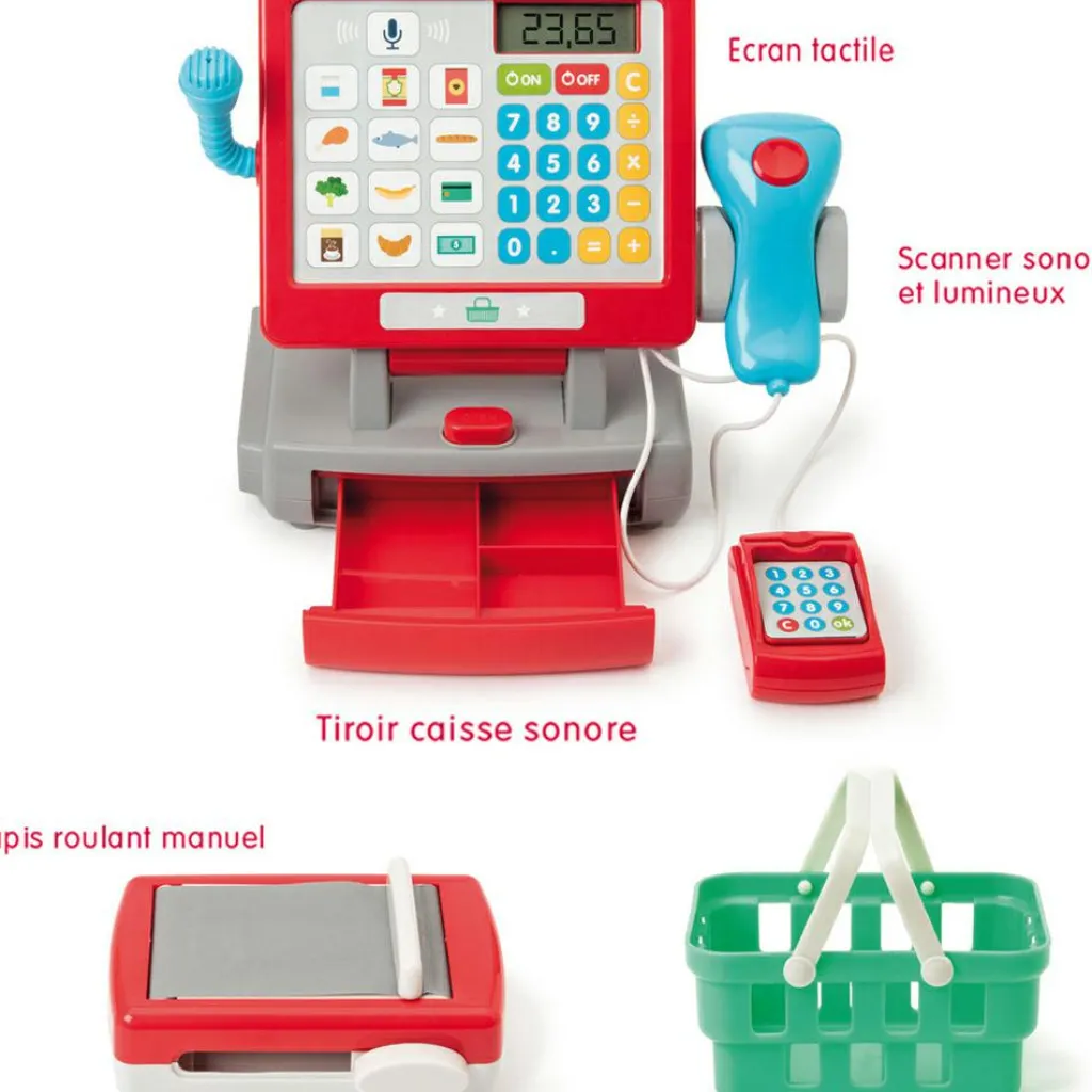 Sonore et lumineux, ce jouet caisse enregistreuse tactile va faire travailler chaque sens de votre enfant pour le familiariser à un nouvel environnement : celui des courses ! S’il va développer son imagination, votre enfant va également s’initier aux petites responsabilités de la vie. Avec son jouet caisse enregistreuse, il pourra scanner, choisir les catégories de produits, préparer l’addition à l’aide des billets et surtout prendre les bonnes décisions pour rendre heureux son client !