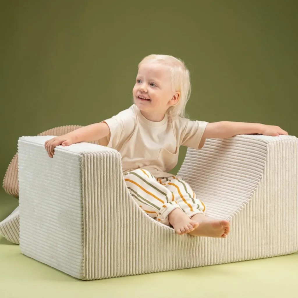 – Transformable en chaise confortable, table ludique, pouf, cabane…