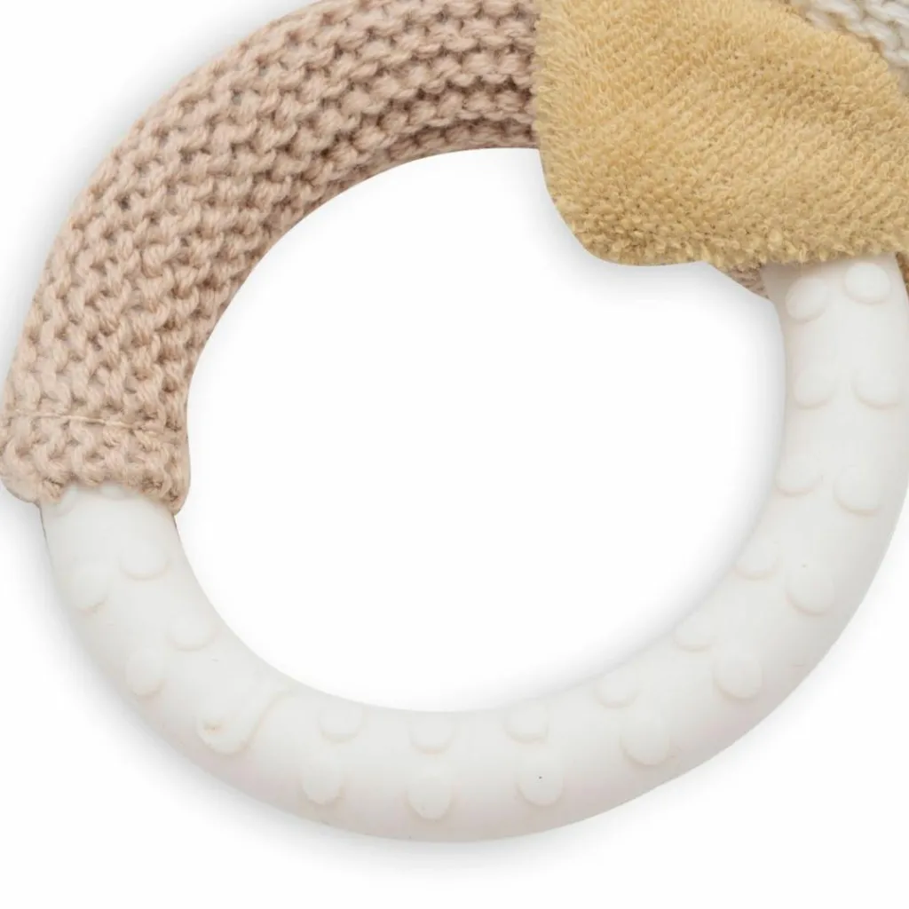 Un petit compagnon doux et rassurant : Ce n’est pas un simple anneau : c’est un petit animal tout droit sorti de l’univers Jollein, avec une tête tricotée pleine de charme. Il attire le regard de bébé, stimule ses sens et devient rapidement son jouet préféré. Léger et facile à saisir, il est parfaitement adapté aux petites mains curieuses qui apprennent à découvrir le monde.