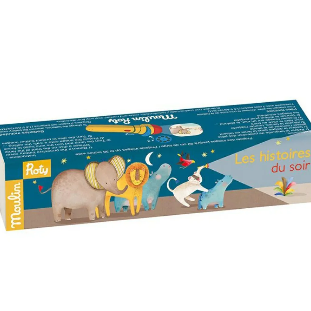 La lampe à histoires Les Papoum de la collection Les Papoum par Moulin Roty développe l’imagination des enfants et encourage leur créativité. La lampe à histoire projette au mur grâce à ses trois disques, trois histoires différentes. Avec sa main, on fait tourner le disque pour faire apparaître les images une par une. Un moment rassurant pour instaurer un rituel du coucher et partager un moment autour d’une histoire.