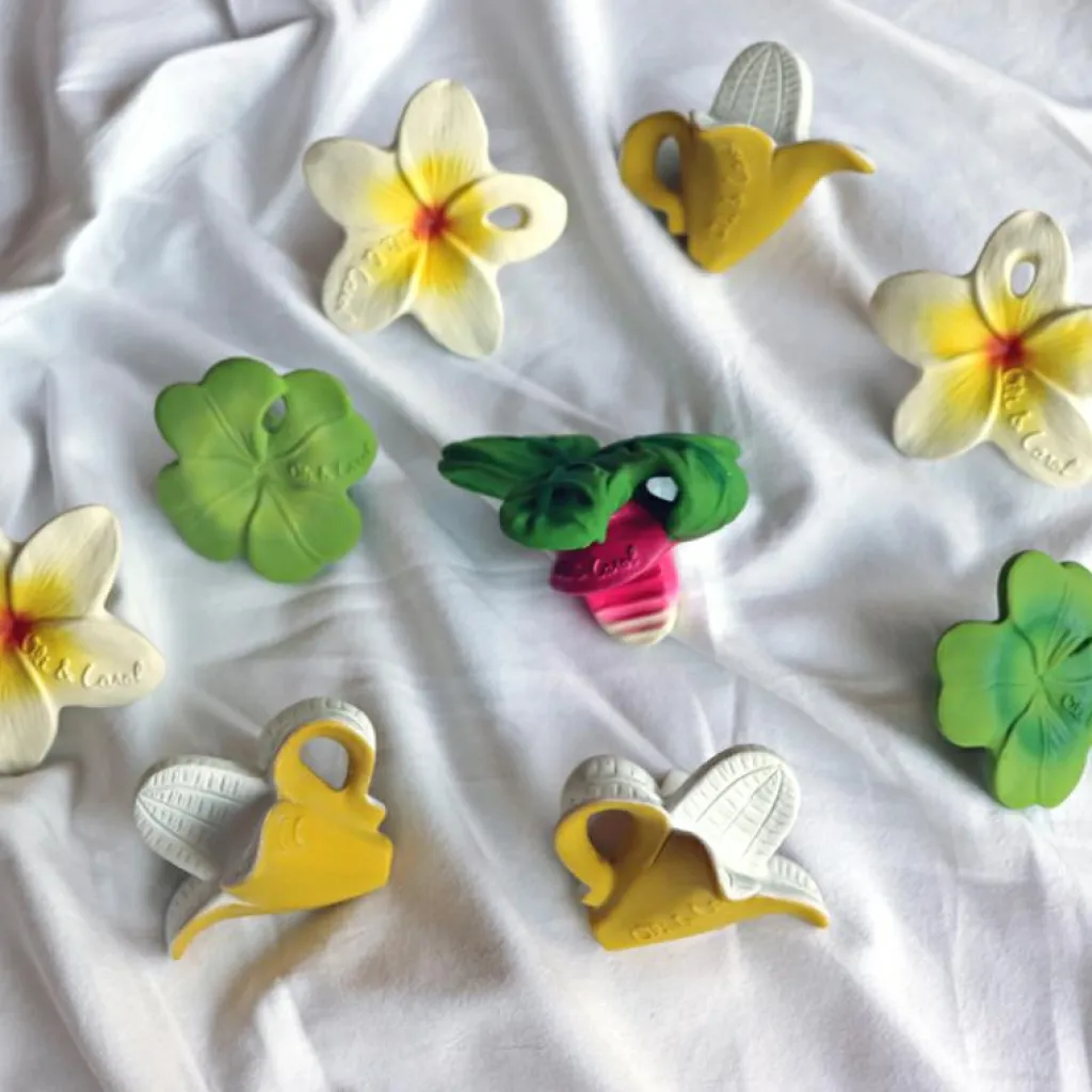 Fabriqué à la main à partir de caoutchouc 100 % naturel issu des hévéas, Anita the Bananita ne contient ni plastique, ni silicone, ni substances toxiques. Chaque pièce est peinte à la main avec des pigments naturels, rendant chaque modèle unique. Sa texture douce, ponctuée de petits reliefs, aide à apaiser les gencives douloureuses tout en stimulant les sens de votre bébé.