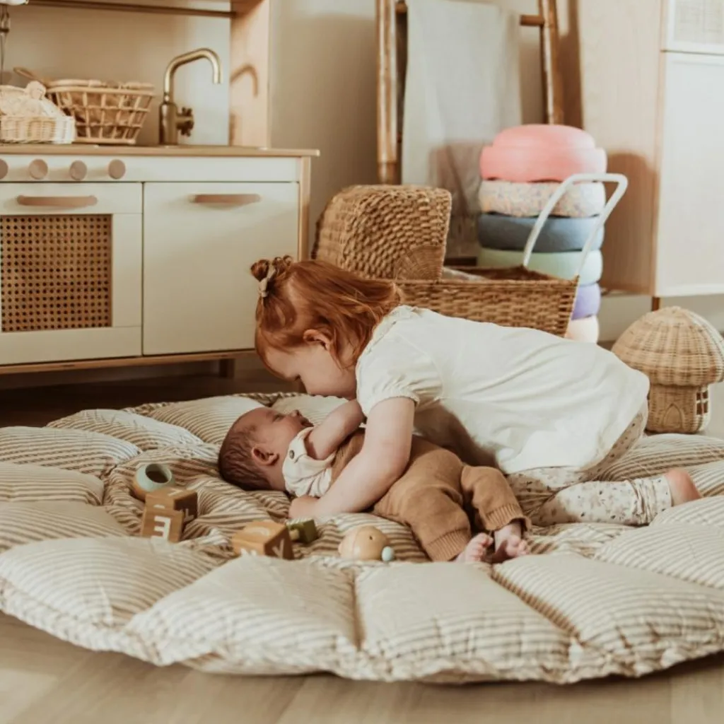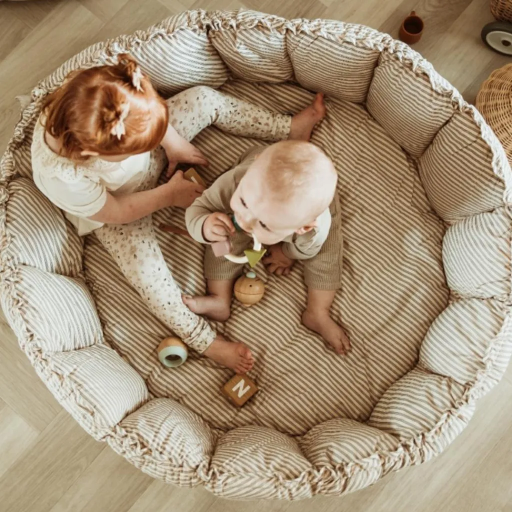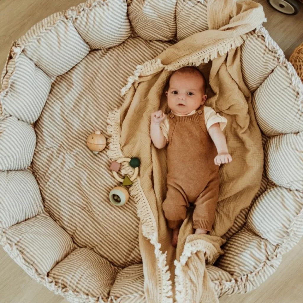 – 3 en 1 : tapis de jeu, sac de rangement pour jouets et cocon nid.