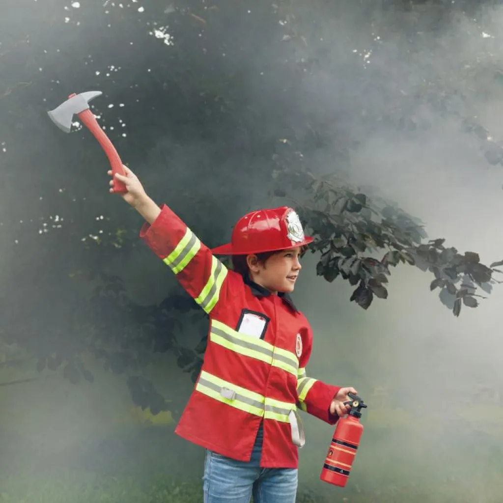 La veste de pompier avec accessoires de la marque Souza For Kids est un costume idéal pour un carnaval, un goûter d’Halloween ou une fête déguisée avec les copains !