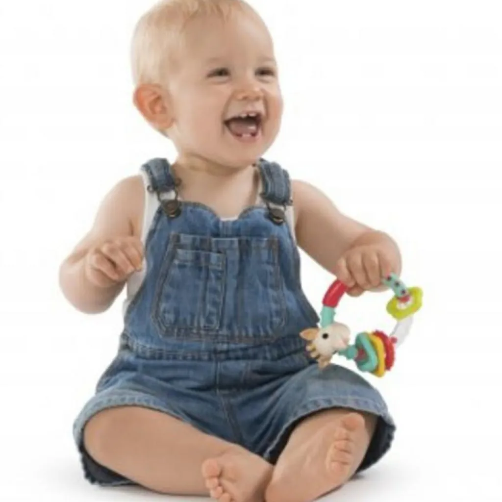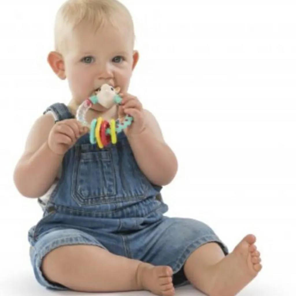 Le hochet multi-texturé Sophie la girafe Il était une fois de la marque Sophie la Girafe éveillera votre bébé durant des heures en stimulant ses sens tout en l’amusant. Le contraste des matières souples et dures à diverses textures soulagera les gencive douloureuse de bébé lors des poussées dentaires.