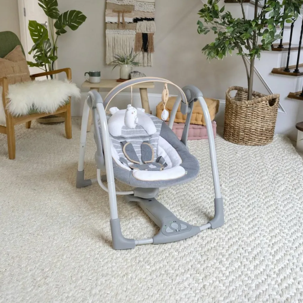 Apportez confort et apaisement à votre bébé avec la balancelle compacte Bella Teddy d’Ingenuity, un véritable cocon portable aux multiples fonctionnalités !
