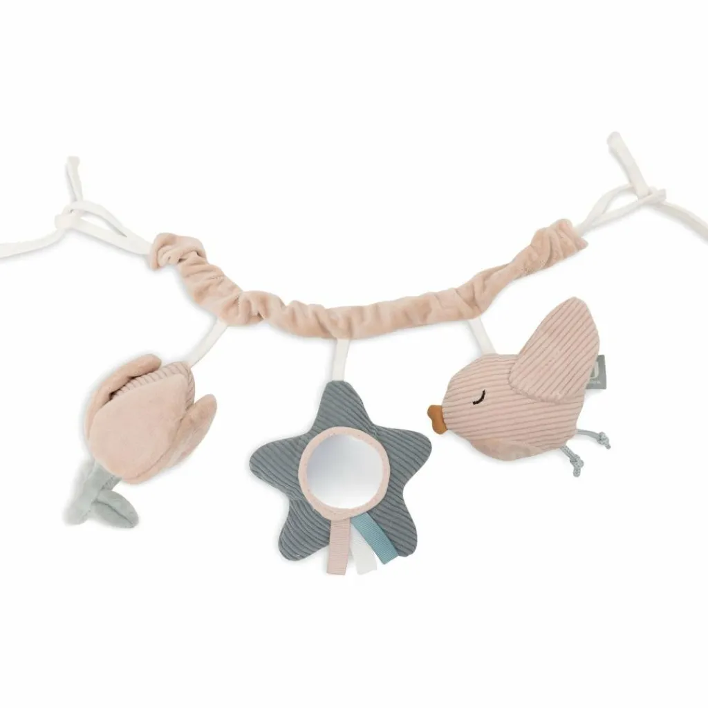 – Peut être fixé sur le cosy, la poussette, le parc, les barreaux du lit, etc.