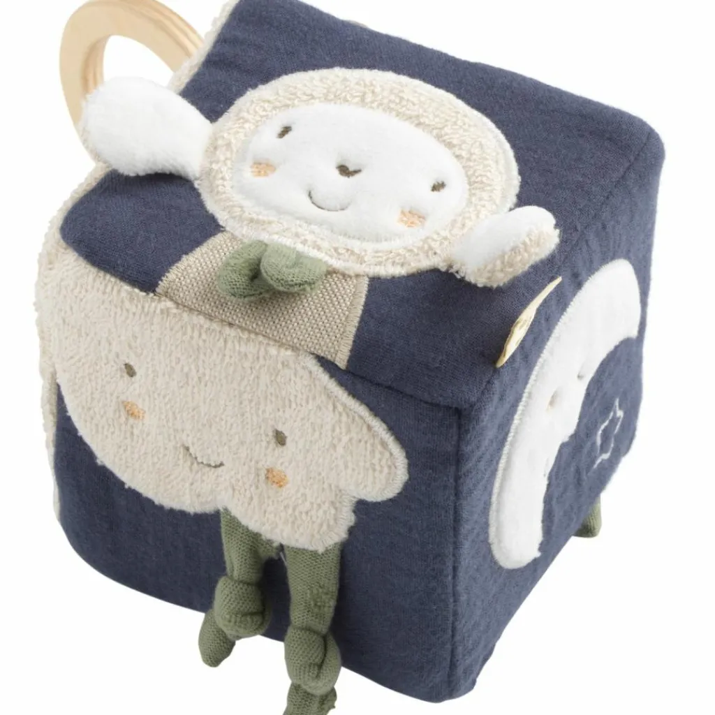 Éveillez la curiosité de bébé avec le Cube d’activités en coton bio de Sauthon, une première découverte sensorielle toute en douceur.