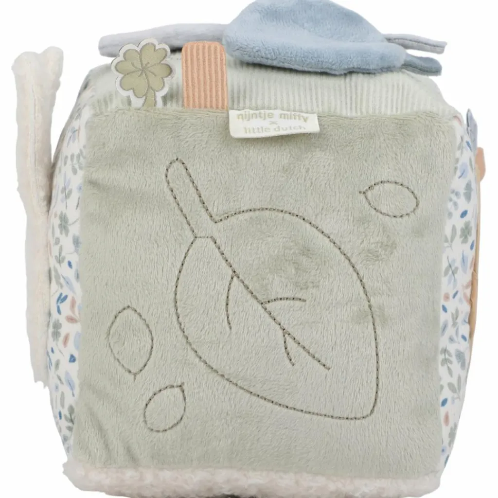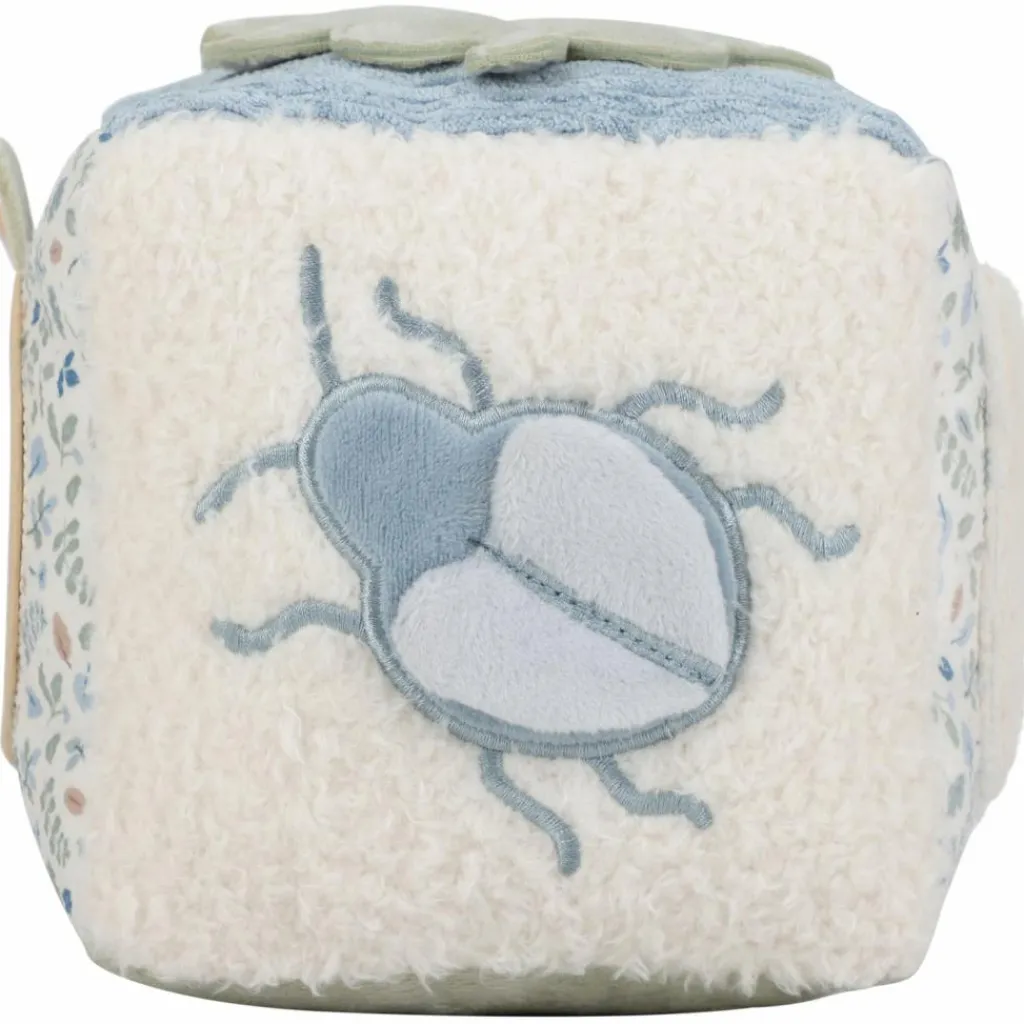 – Toute une palette de textures, de sons et de personnages se réunissent dans la conception de ce doux cube d’activités.