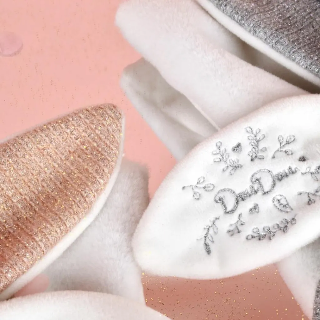 Un véritable bijou de tendresse pour célébrer les 25 ans de Doudou et Compagnie. Ce doudou plat en forme d’ours, vêtu d’un adorable bonnet de nuit et réalisé dans un tweed raffiné (disponible en version rose ou grise), est un concentré de douceur et d’émotion. Chaque détail est pensé pour émerveiller : broderies délicates, étiquettes poétiques telles que « Bisoux tous doux » ou « Rayon de soleil », et grands pétales que Bébé adorera manipuler.
