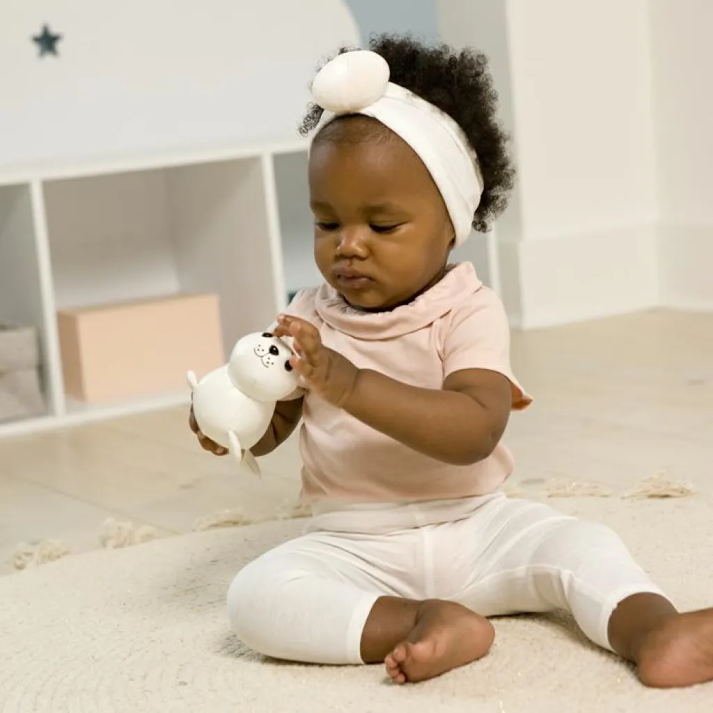 – Petite attache intégrée permettant de fixer à une arche d’éveil.