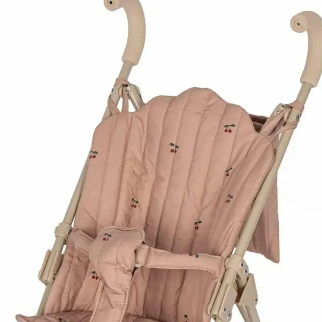 Avec son joli tissu matelassé à imprimé cerises, la poussette Cherry Blush de Konges Slojd est idéale pour accompagner les jeux d’imitation des tout-petits. Légère, pliable et facile à manier, elle permet de faire comme les grands tout en apportant une touche chic aux promenades des poupées.
