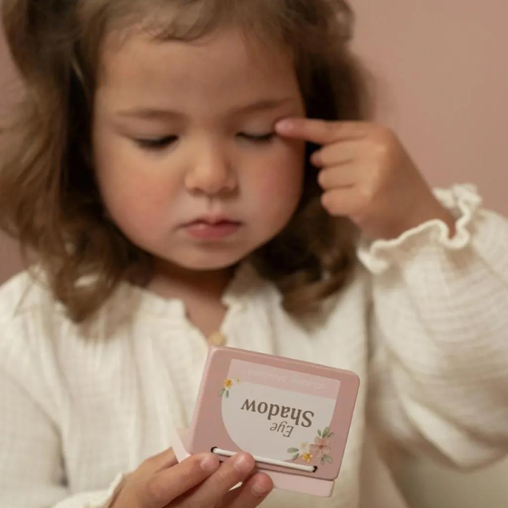 Avec ce set de maquillage en bois FSC, les enfants peuvent s’inventer des histoires, imiter les grands et s’amuser des heures durant, le tout en toute sécurité. Présentée dans une jolie trousse ornée de fleurs colorées, cette panoplie contient 10 accessoires de beauté en bois réalistes : miroir de poche, flacon de parfum, tube de crème, rouge à lèvres, vernis à ongles, poudre avec houppette, fard à paupières, mascara et lime à ongles.