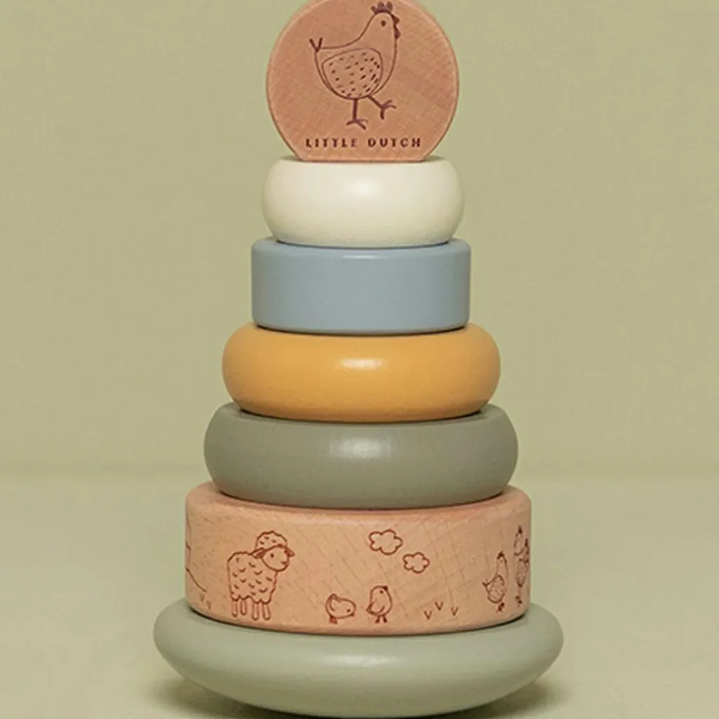 – Cette tour d’anneaux à empiler en bois ludique avec thème de la ferme est conçu pour développer la coordination oeil-main par le plaisir et le jeu pratique.