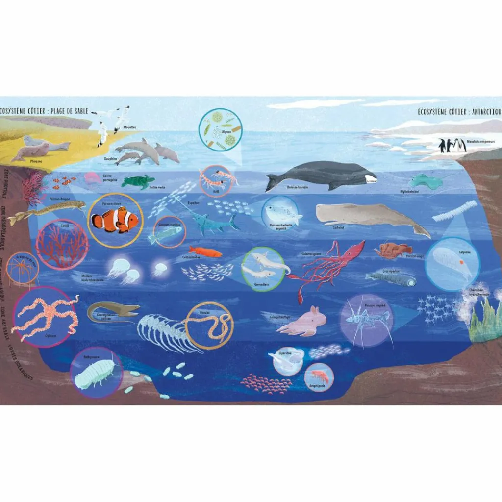 – Cet album mêle fiction et pages documentaires pour faire découvrir aux enfants l’écosystème que constituent les océans et pourquoi il est nécessaire de le protéger.