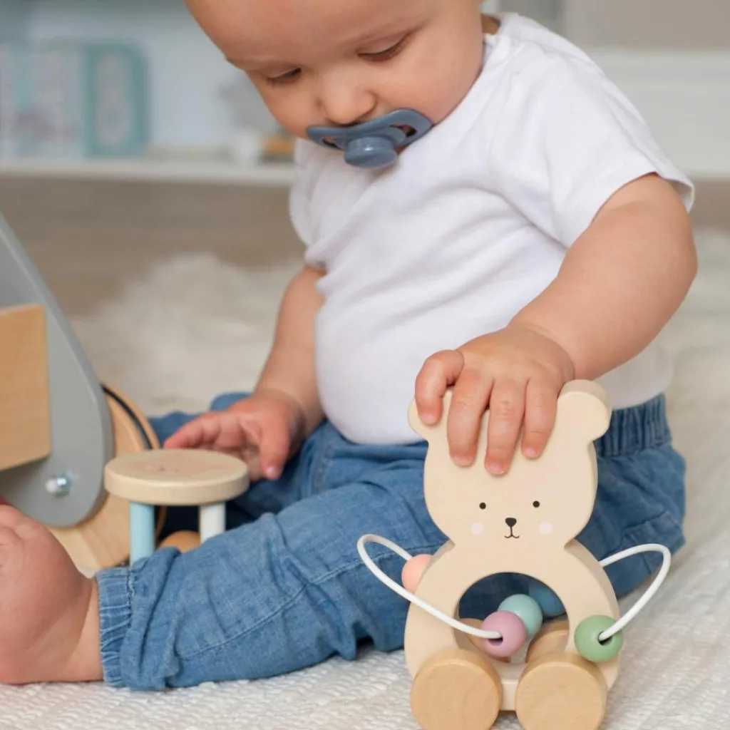 – Jouet à tirer en forme d’ours en bois.