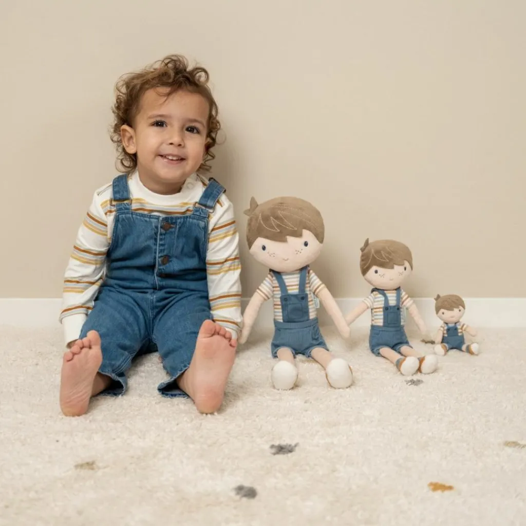 – Jim peut tenir assis et aime t’accompagner dans la poussette pour poupée en bois de Little Dutch.