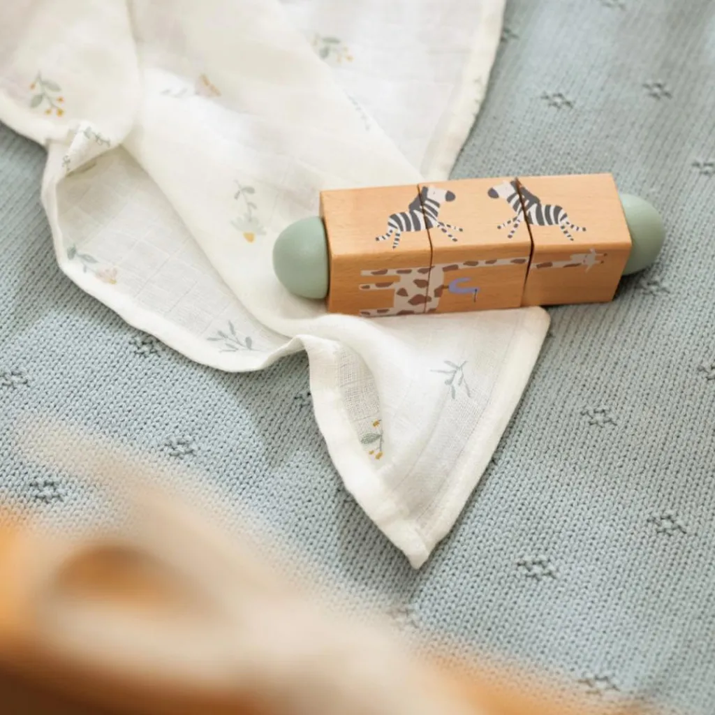 – 4 animaux à découvrir (1 girafe, 1 zèbre, 1 guépard et 1 crocodile).