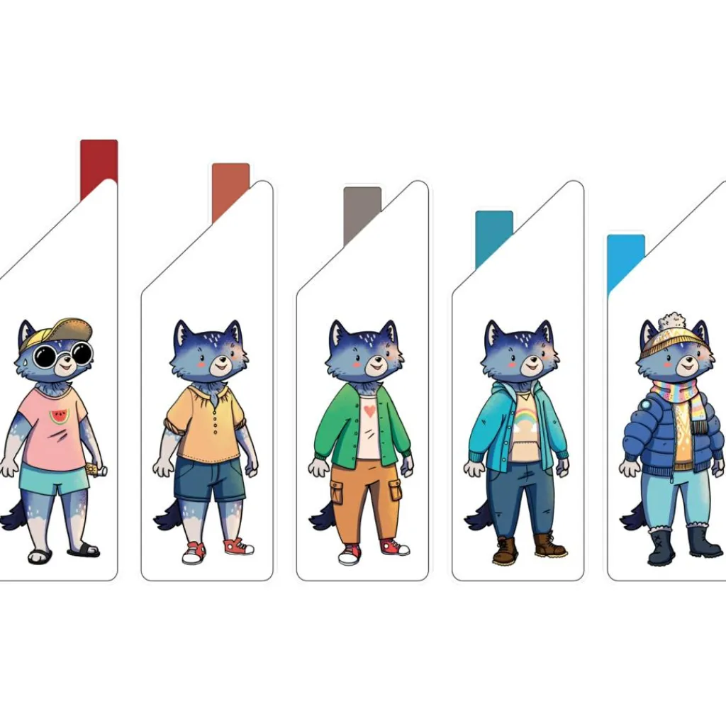 – 5 plaquettes représentant les différentes tenues recommandées en fonction de la météo.