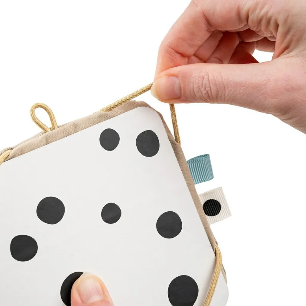 – Attachez-le sur une arche d’activité ou un tapis d’éveil ou posez-le par terre pour encourager bébé à jouer sur le ventre.