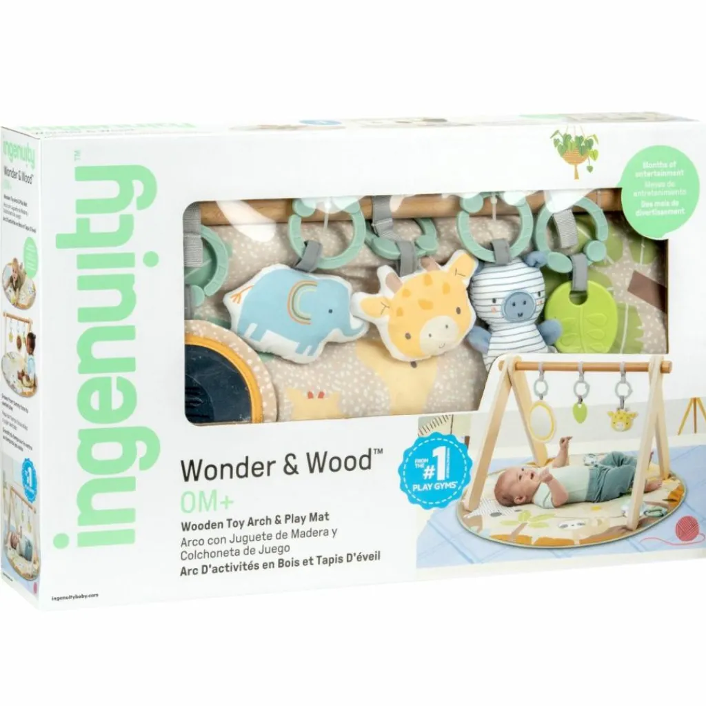 Un univers d’éveil tout en douceur avec le Tapis d’éveil avec arche en bois Tanner d’Ingenuity.
