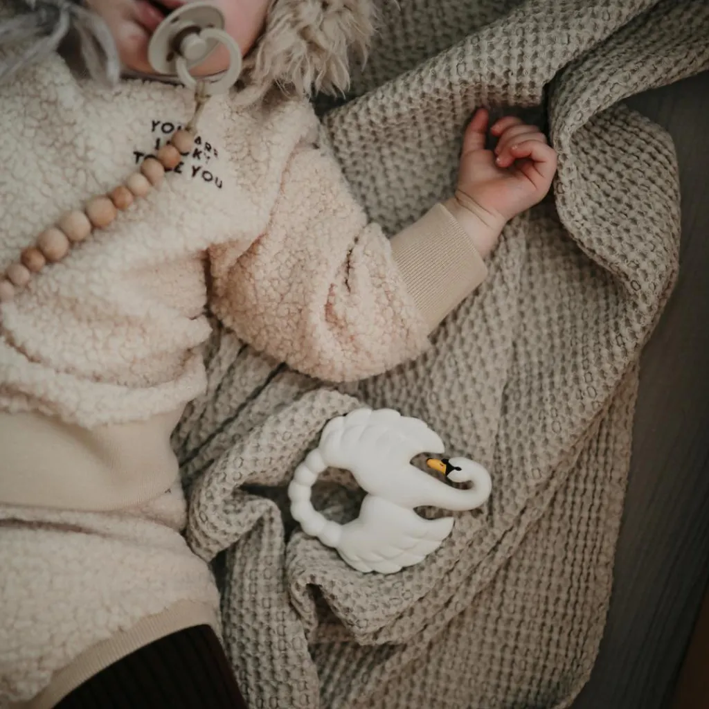 L’ anneau de dentition Cygne de la marque Natrüba soulagera les gencives douloureuses de votre bébé pendant les poussées dentaires. En caoutchouc naturel issu de l’hévéa, et grâce à ses différentes textures, ce mignon cygne stimulera les sens de votre tout-petit.
