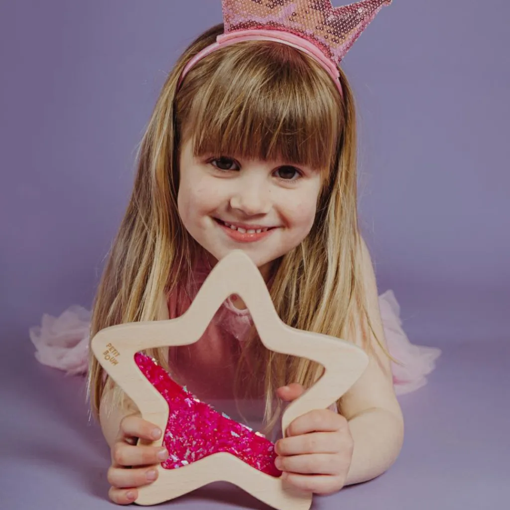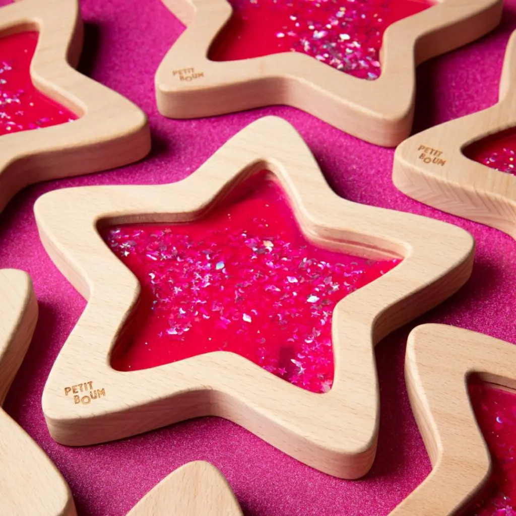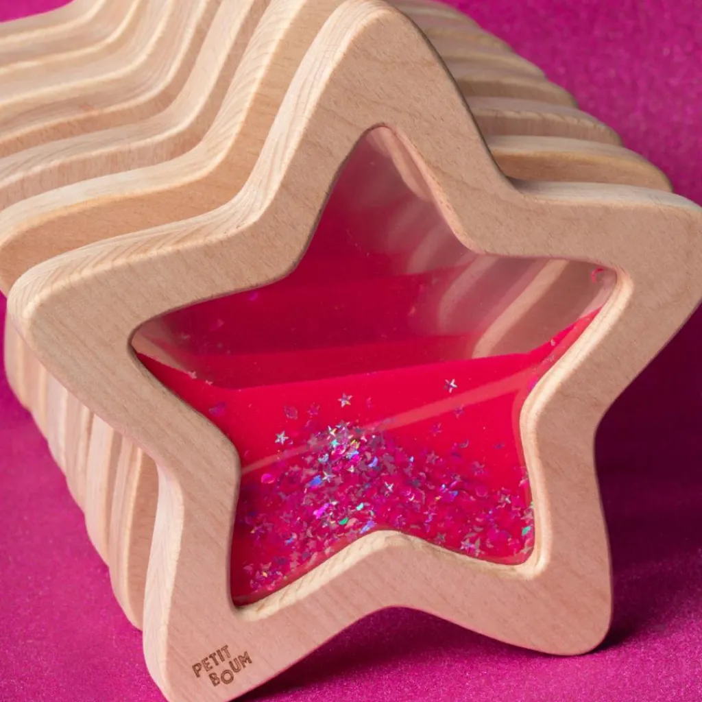 Cette étoile sensorielle remplie de paillettes scintillantes et de liquide coloré capte l’attention des tout-petits tout en stimulant leurs sens. Sa forme étoilée en bois naturel est facile à manipuler et parfaite pour les petites mains curieuses.