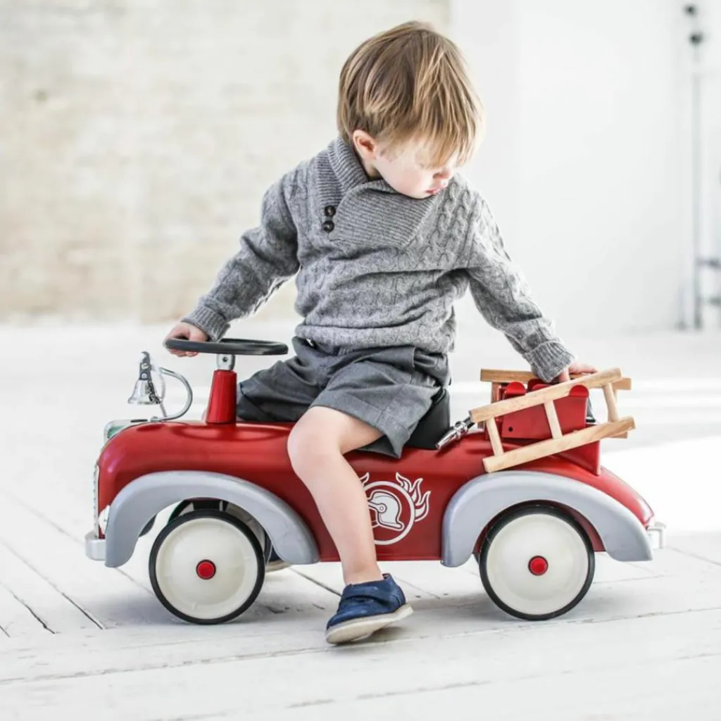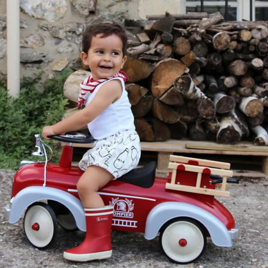 Inspiré des camions de pompiers des années 50, le Speedster Pompier séduit par son design vintage « Fire Department » et sa robustesse. Fabriqué en métal, avec ses garde-boue rétro-chic, il a été pensé pour résister aux heures de jeu et se transmettre de génération en génération. À 1 an déjà, votre enfant peut enfourcher son porteur, développer sa motricité, apprendre à pousser avec ses jambes, tourner ou reculer… tout en se prenant pour un vrai héros du feu.