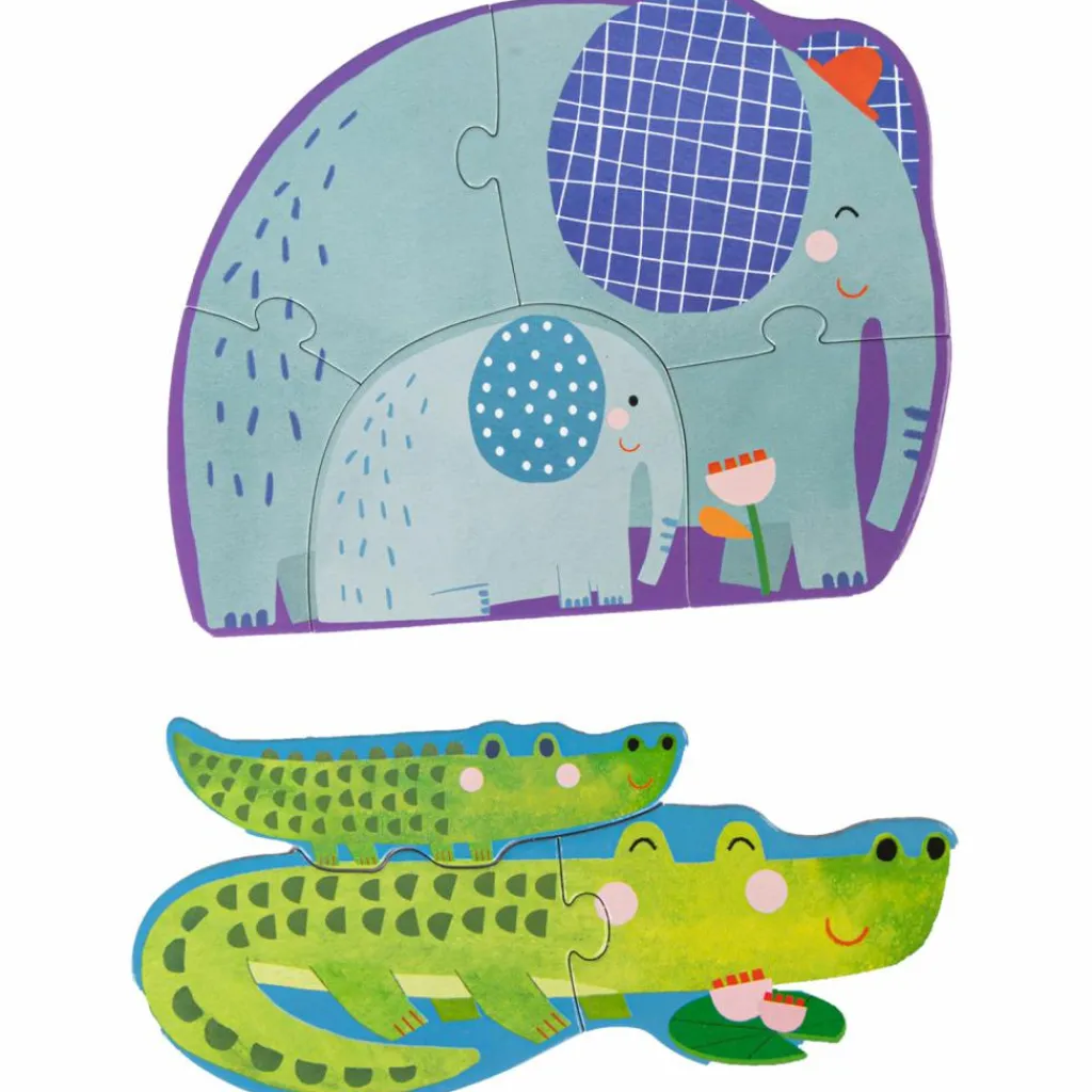 Avec ses jolies illustrations colorées et ses pièces adaptées aux petites mains, ce coffret propose 5 puzzles progressifs allant de 2 à 6 pièces. Chaque puzzle met en scène un duo d’animaux attachants (éléphants, crocodiles, girafes, lions, tortues), parfaits pour éveiller la curiosité des tout-petits et stimuler leur motricité fine.