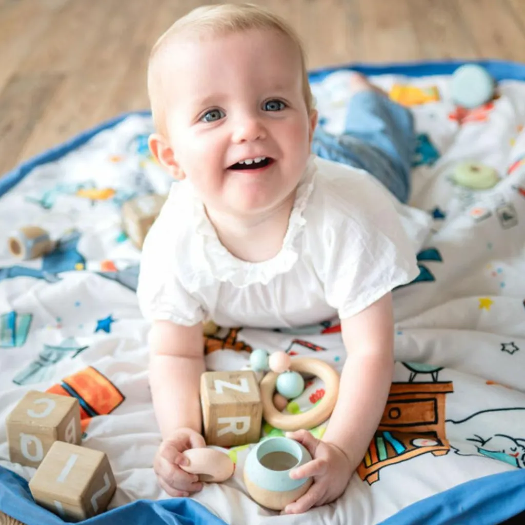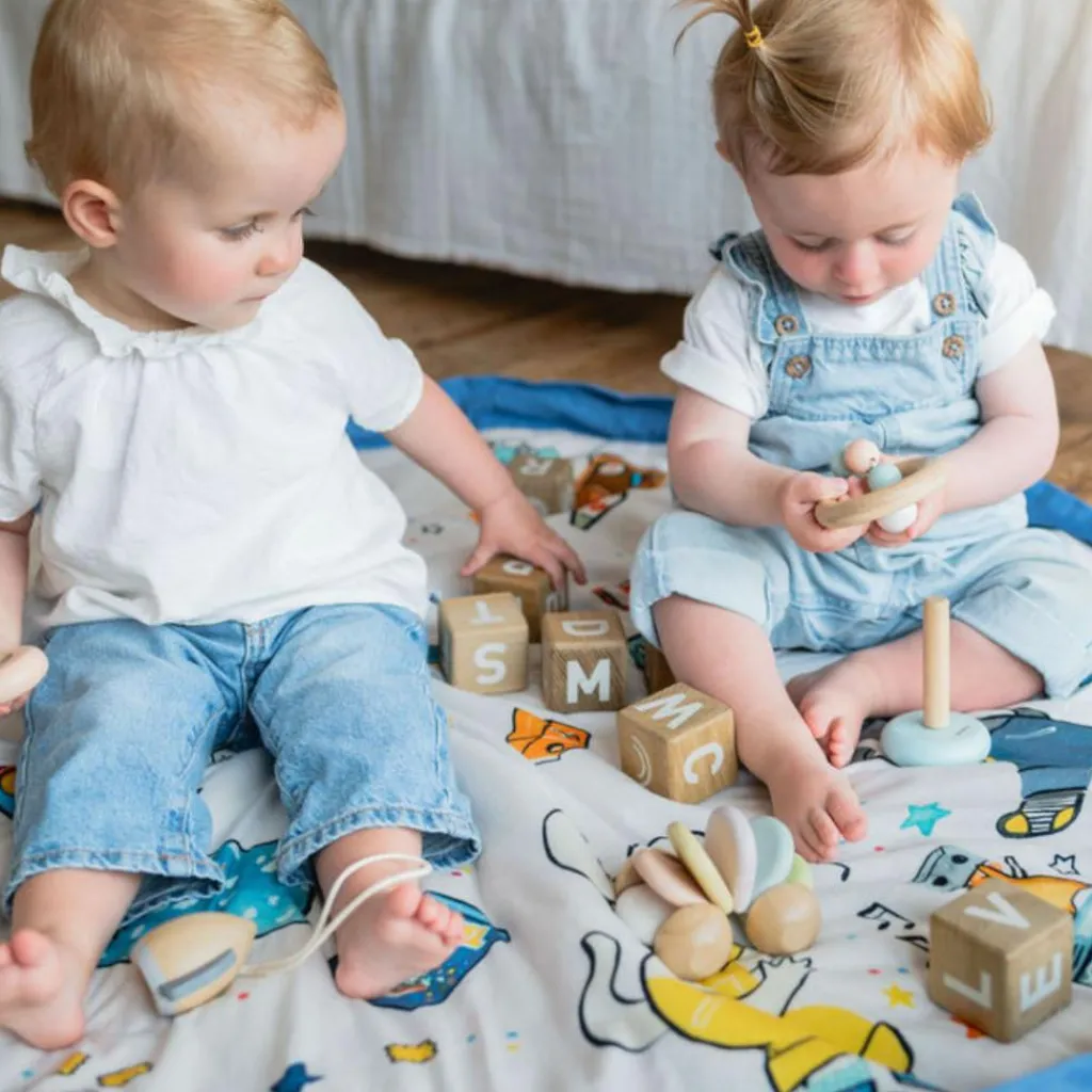 Inspiré de l’univers tendre et poétique de Puce & Pilou, ce tapis de jeu aux tons bleu lumineux invite à la détente et à l’éveil. Il se transforme en un clin d’œil : tapis de jeu moelleux à la maison, sac de rangement ou de transport pour les sorties. Une création signée Play&Go et Moulin Roty, conçue pour faciliter la vie des jeunes parents tout en offrant à bébé un espace rassurant et élégant.