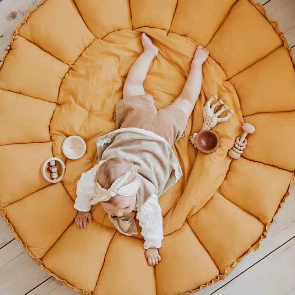 – 3 en 1 : tapis de jeu, sac de rangement pour jouets et cocon nid.