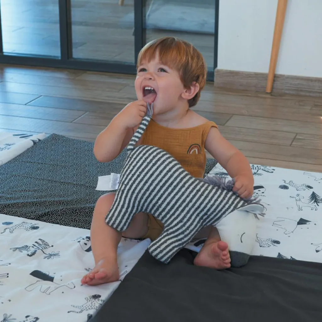 Le tapis de jeu pliable XL multifonctions Black & white experience de la marque Candide est un accessoire multifonctions très pratique. Il peut être utilisé comme tapis de jeu, mais également comme matelas d’appoint, pouf ou encore cabane !