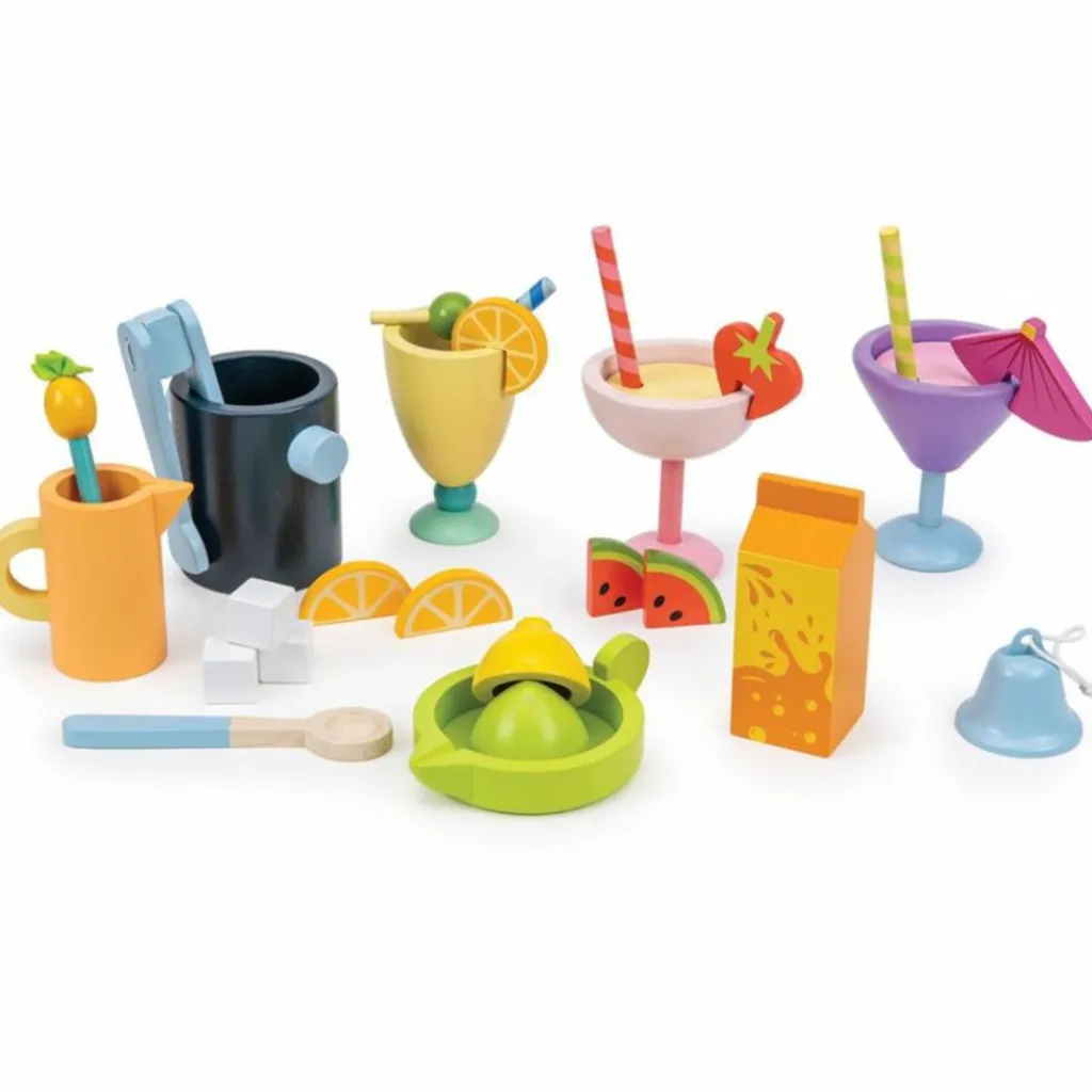– Un jeu de rôle réaliste : Servez vos créations dans l’un des 3 verres en bois colorés et agrémentez-les d’un parapluie, d’un fruit coupé ou d’une paille rayée.