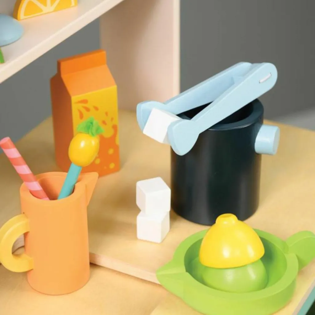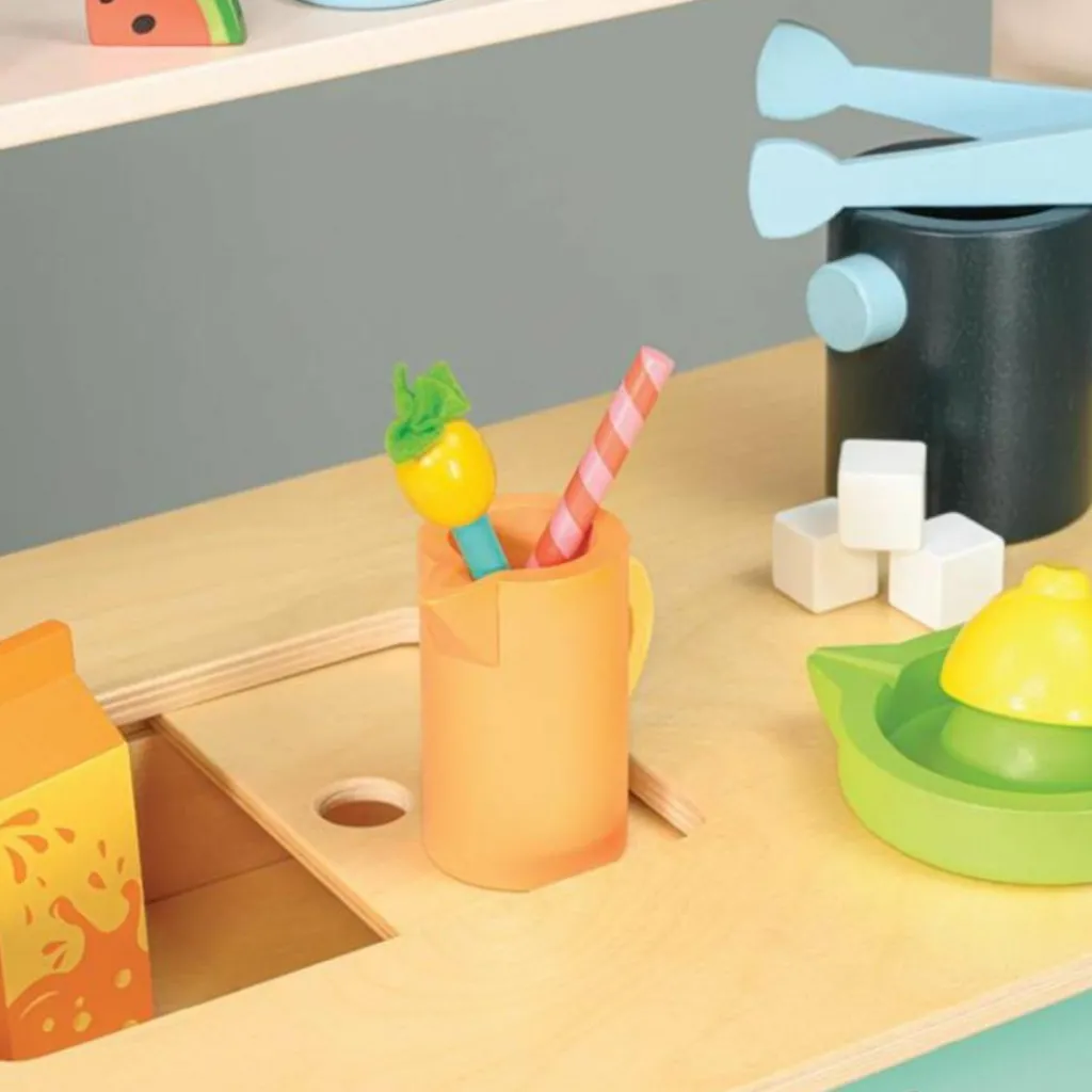 Faites pétiller l’imagination de votre enfant avec le Chariot à boissons Tender Leaf, un bar miniature coloré et lumineux qui transforme chaque jeu en véritable fête !