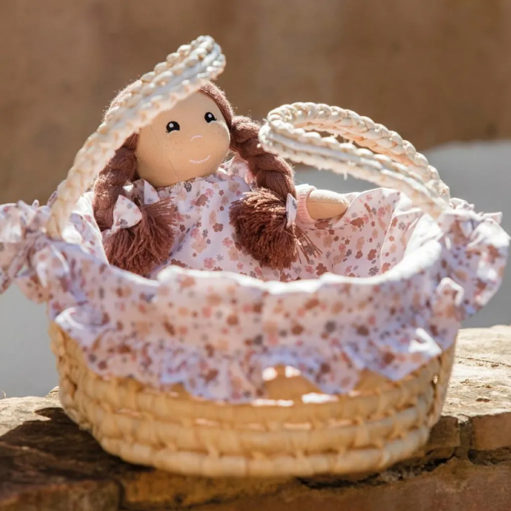 – Couffin Somerset en osier avec impression de fleurs multicolores et poignées pour transporter les poupées.
