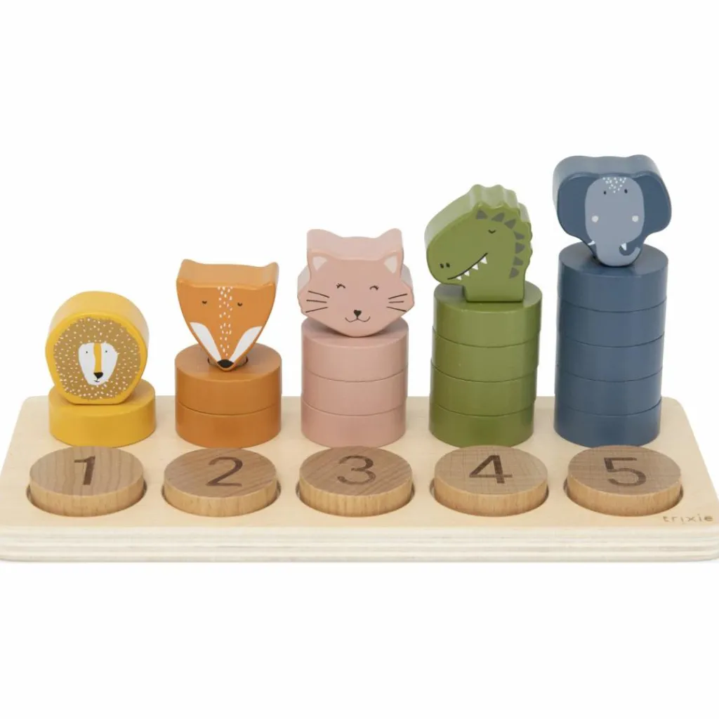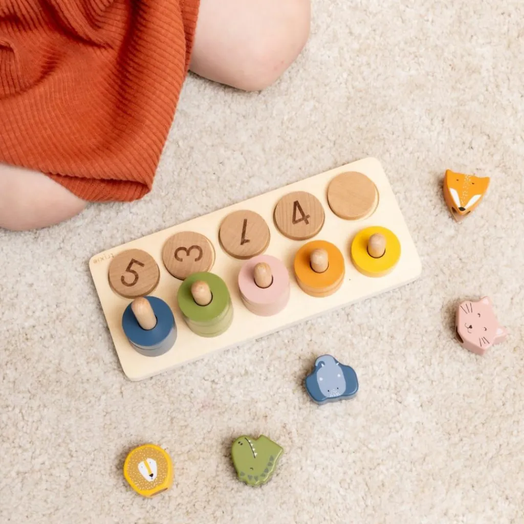 Un puzzle éducatif et ludique ! Avec ce jouet à encastrer 2 en 1 en bois Trixie, les enfants apprennent à compter tout en s’amusant avec leurs animaux préférés. Chaque chiffre de 1 à 5 est associé à un animal et à des arcs colorés à empiler, permettant de développer à la fois la motricité fine et la logique. Un jeu parfait pour accompagner les premiers apprentissages de façon amusante et intuitive.