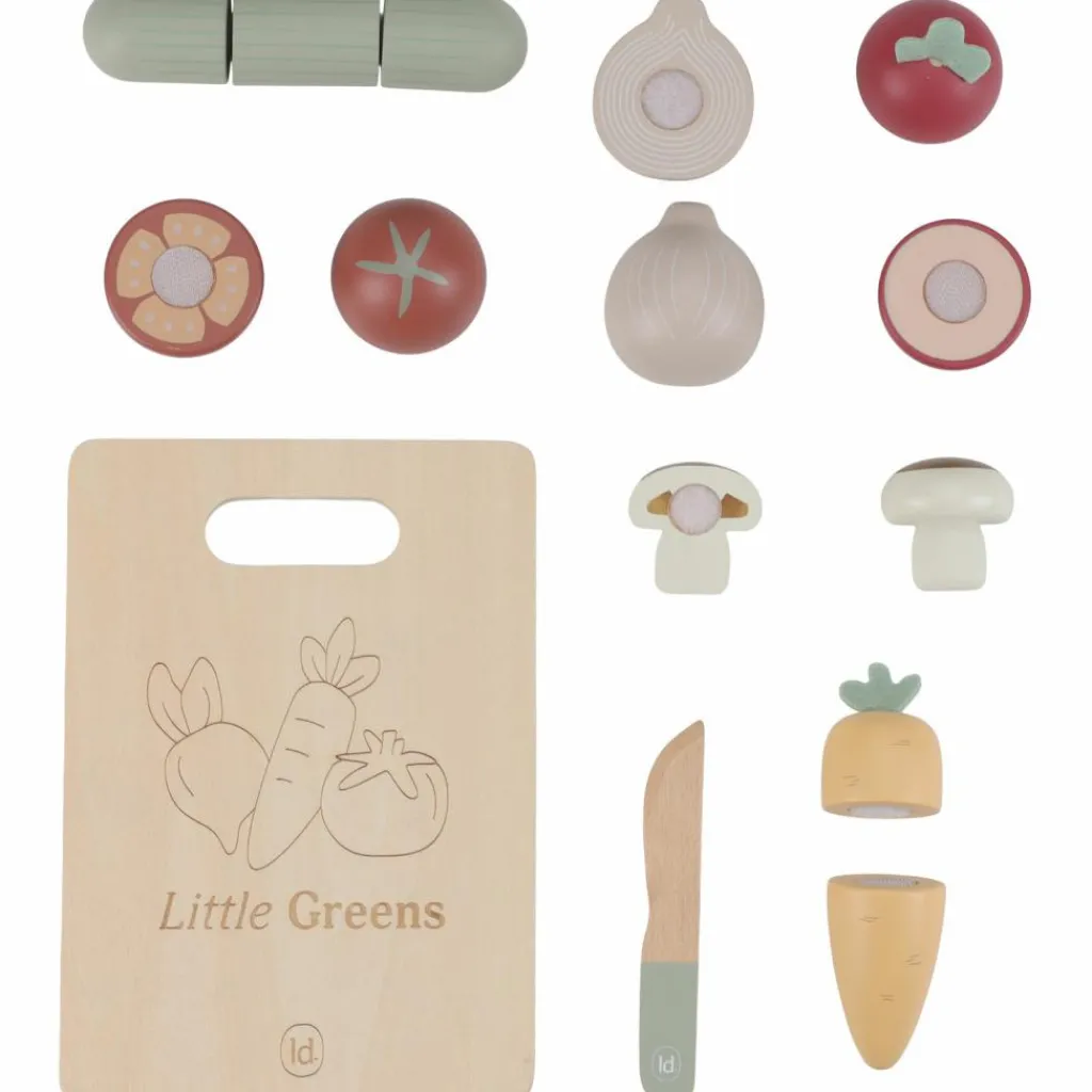 – Contient 1 planche à découper, 1 couteau en bois et 6 légumes (carotte, concombre, tomate, oignon, betterave, champignon). – Légumes en deux parties reliées par du velcro. – Bois certifié FSC. – Dimensions adaptées aux enfants.