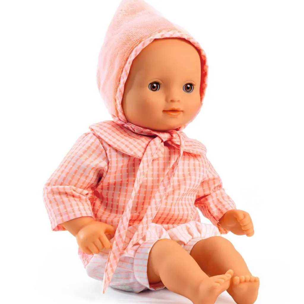 – Poupée et vêtements lavables en machine à 30°C.