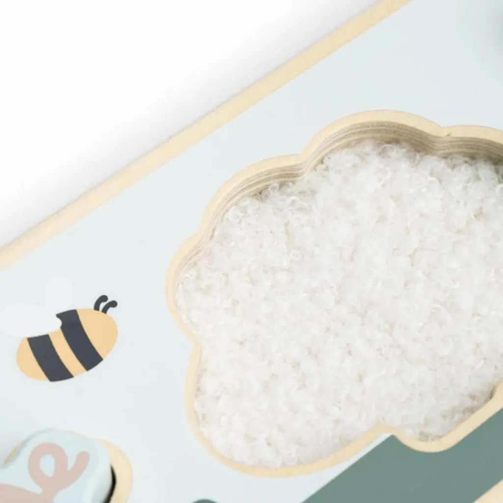 – Ce puzzle sensoriel a des détails stimulants comme des textures et différents motifs à explorer.