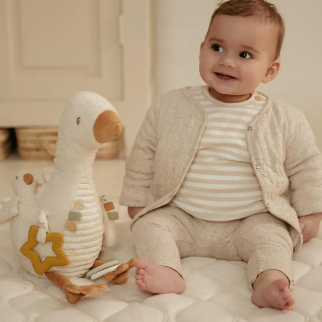 Offrez un monde de découvertes douces à votre bébé avec la peluche d’activités Oie Newborn de Little Dutch.