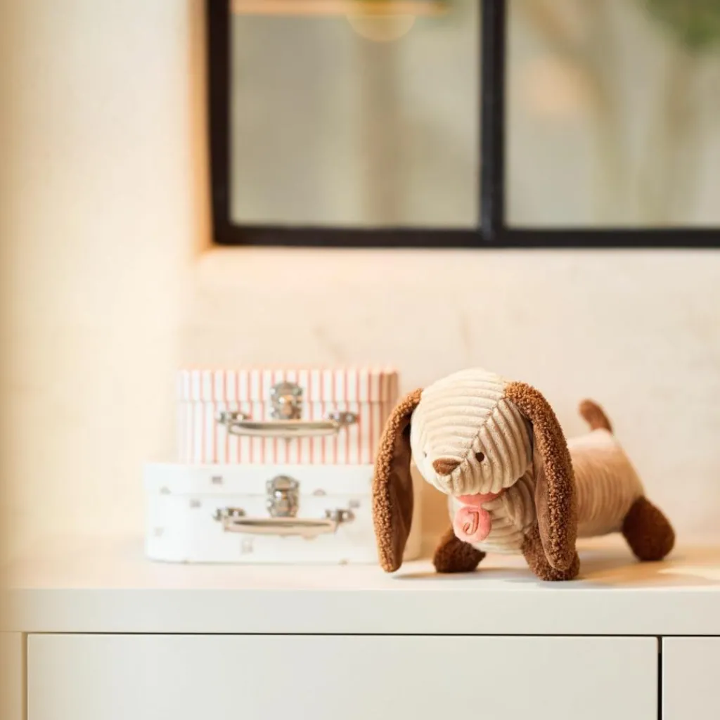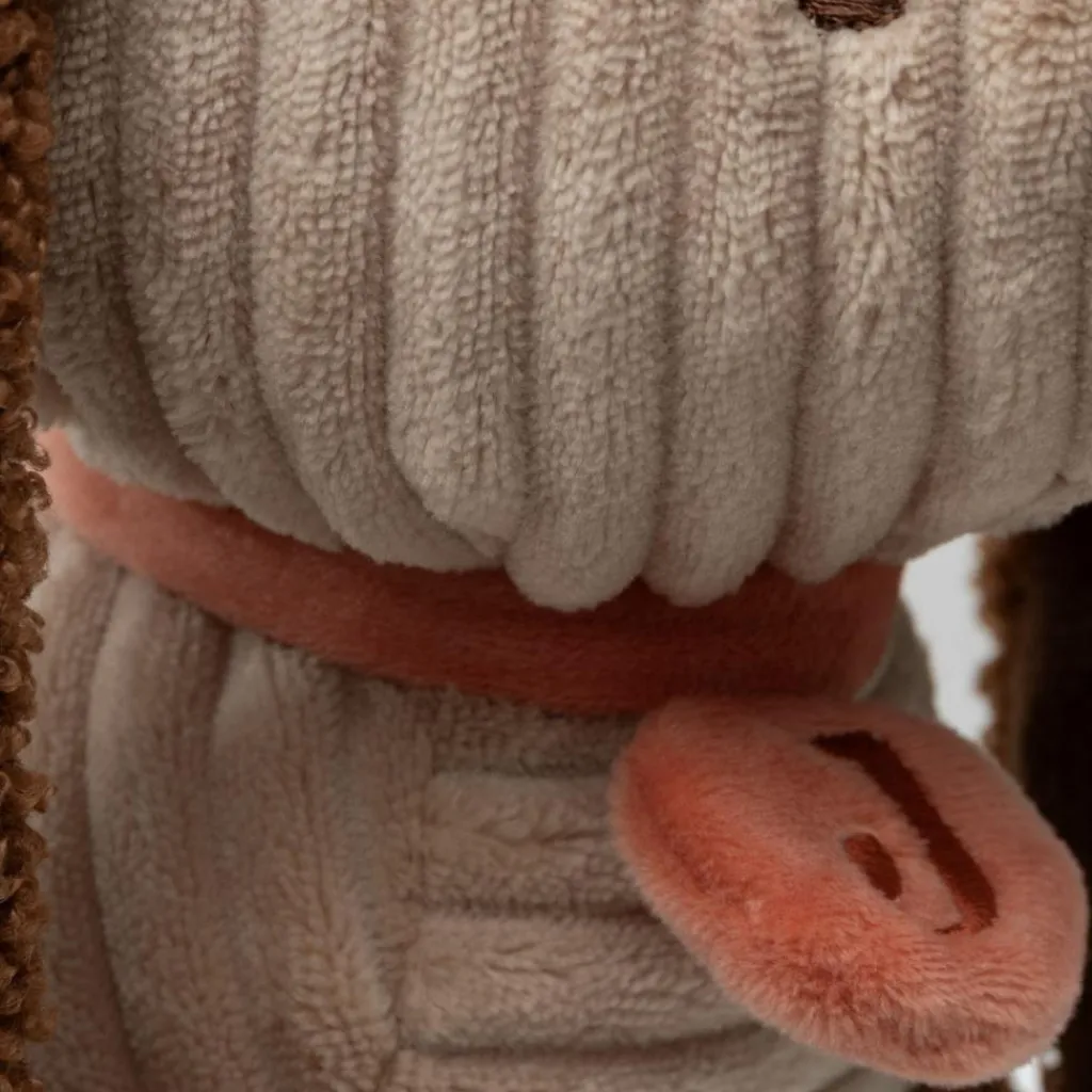 Avec son doux pelage en tissu côtelé biscuit et ses longues oreilles en bouclé marron cuir, Diego Dog n’est pas un simple jouet. C’est un petit chien attendrissant, toujours prêt à partager les câlins, les jeux et les grandes aventures du quotidien.