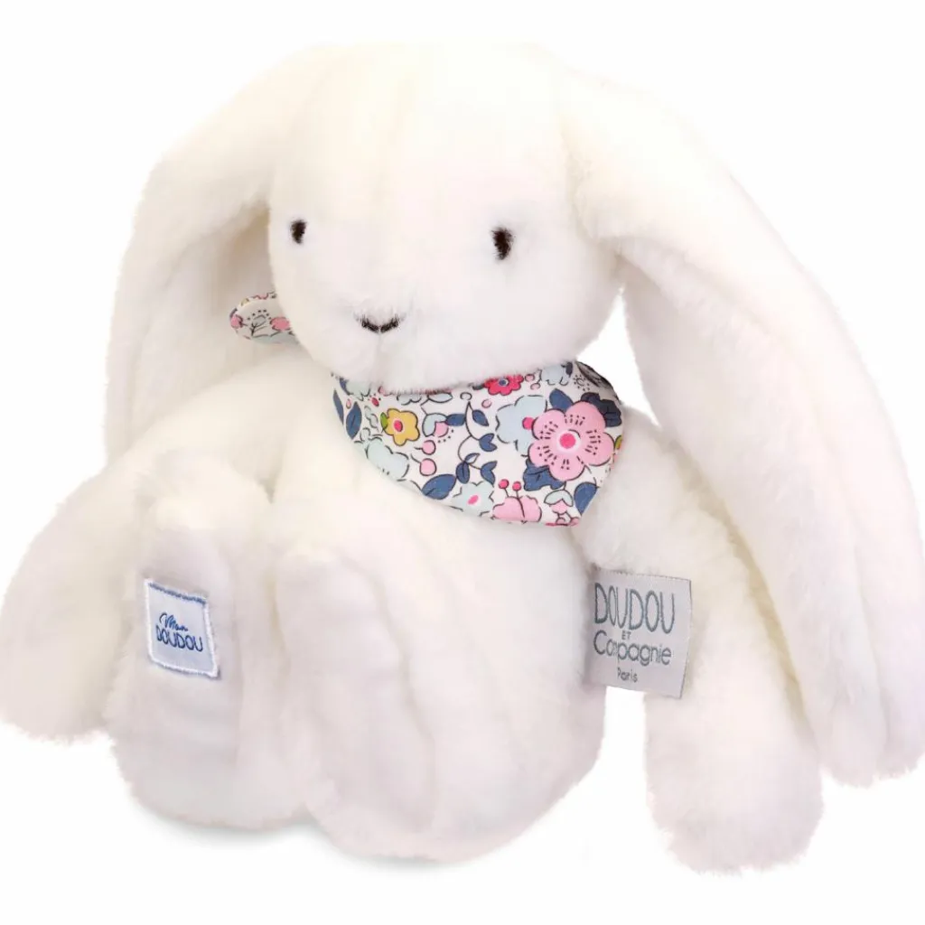 Son ravissant bandana fleuri — issu d’un imprimé exclusif Doudou et Compagnie — ajoute une touche de charme et de raffinement. Ce détail délicat, à la fois esthétique et pratique, rend chaque Lapin Fleurette unique. Il peut aussi tenir assis, ce qui le transforme en adorable objet déco pour la chambre de bébé.