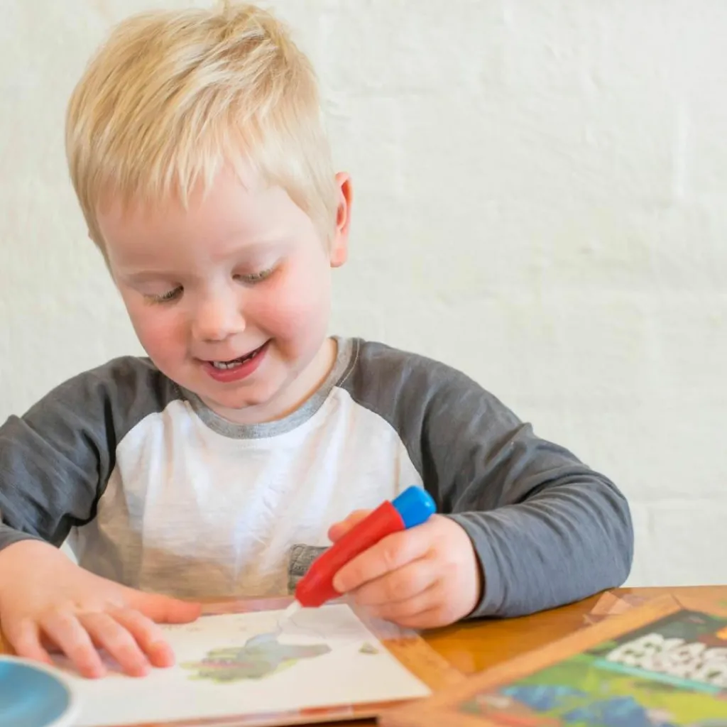 Regardez vos petits devenir des artistes magiques avec le monde magique de la peinture dinosaures de Tiger Tribe. Remplissez votre pinceau magique d’eau et révélez les illustrations qui prennent vie à chaque coup de pinceau !