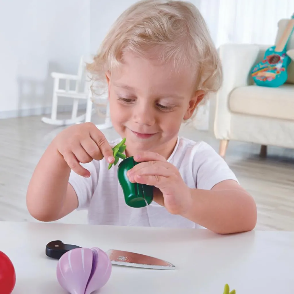– Comprend 8 pièces : 1 poivron vert, 1 tomate, 1 carotte, 1 couteau, etc.