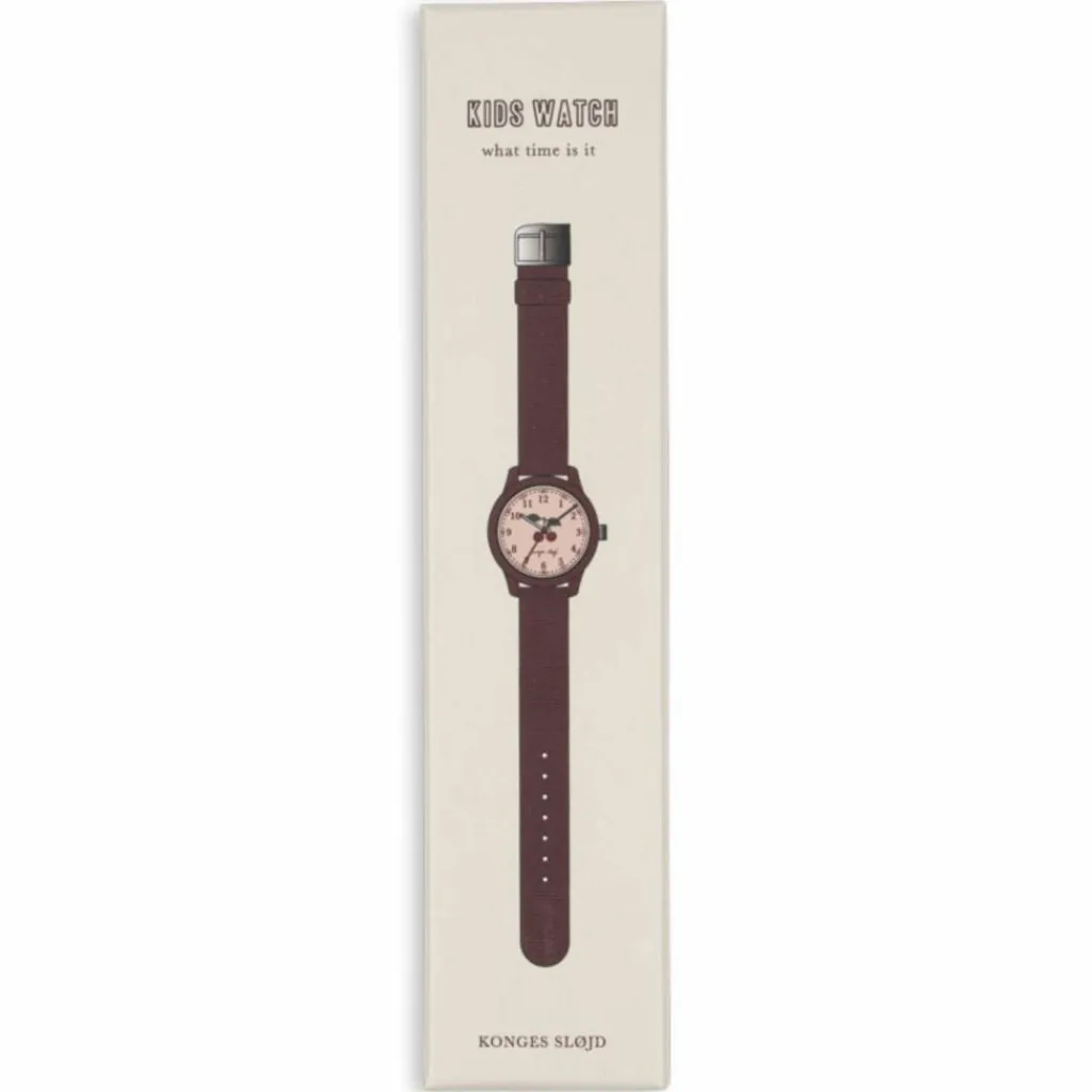 Apprenez à lire l’heure en toute simplicité avec la montre pour enfant Cherry de Konges Slojd, une alliée ludique et élégante au poignet de votre enfant !